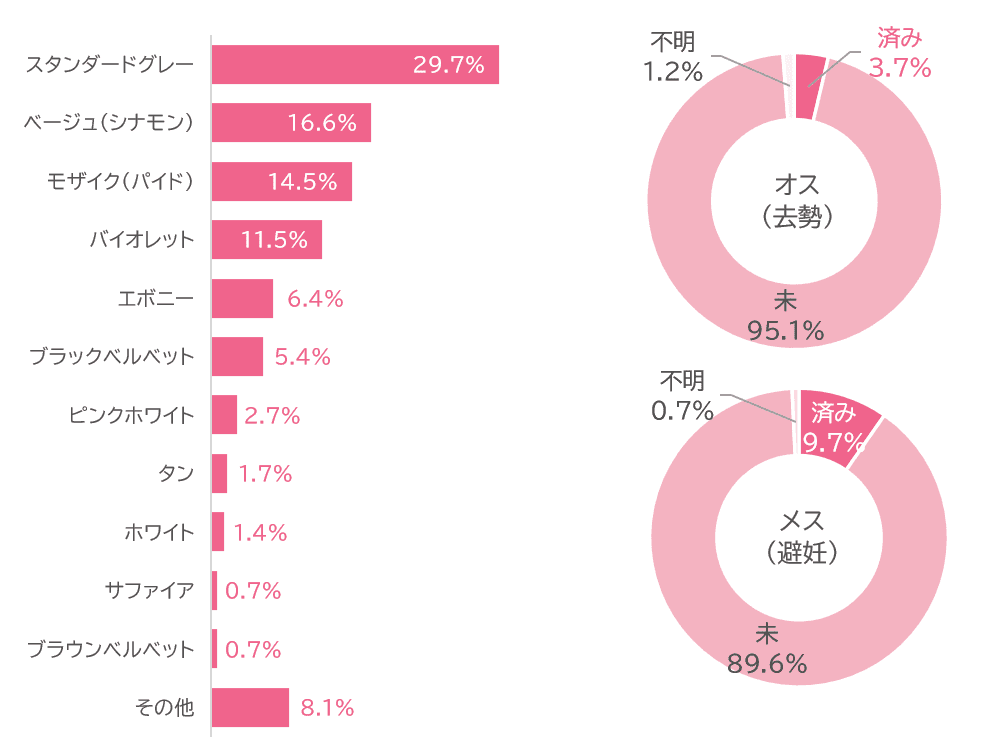 その集計結果によると、「日本」生まれのチンチラさん(ペットショップ、ブリーダー、自宅での繁殖を含む)は全体の34.7%、「海外」出身のチンチラさんは45.6%となっており、昨年度に比べて日本生まれの割合がやや増加しています。
