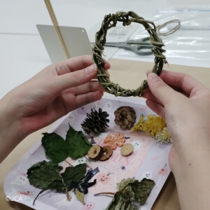 約1時間の「ワークショップで使用する植物に関するセミナー」と材料の採取場所や処理法の説明をした後、ご予約いただいた皆さまに実際にリースを作っていただきます。