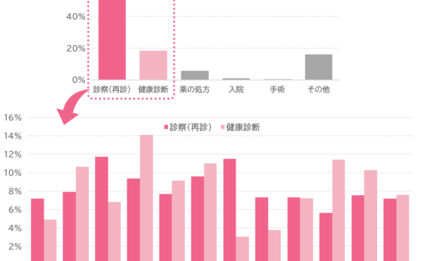 チラケア通信 2025年10月号「通院目的と月別診察傾向(健康診断・再診)」